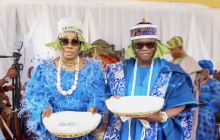 The UK-based couple, natives of Isonyin in Ijebu North East Local Government Area and known advocates of community development, were honoured with the titles of Otunba Gbadero and Yeyeluwa of Abigi Kingdom.